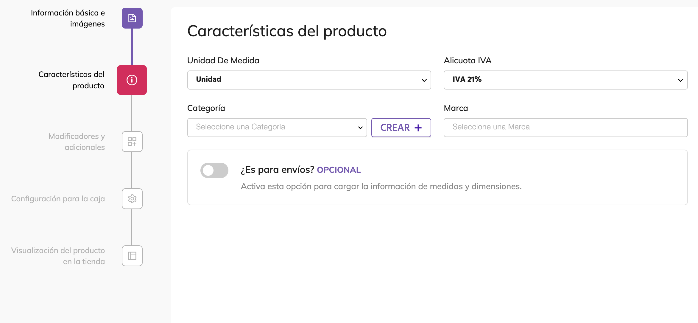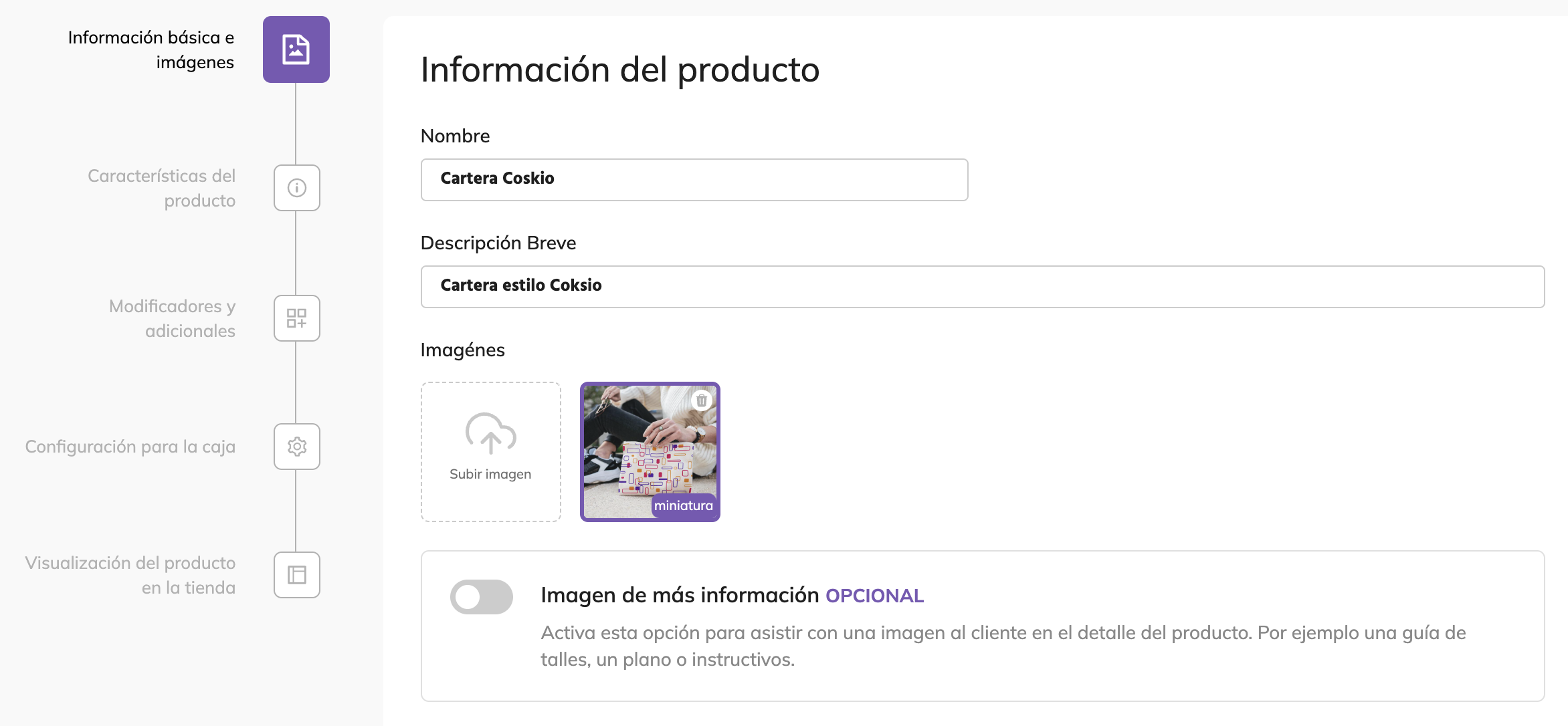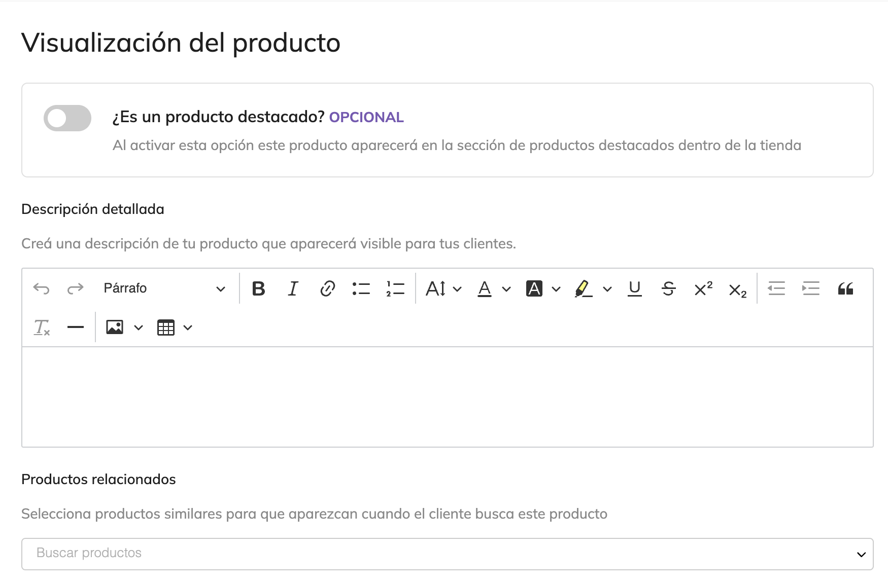 Esta sección te permite configurar 3 aspectos que definen como se visualiza el producto: