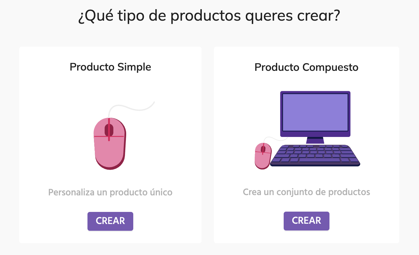 Al crear un producto nuevo se debe elegir el tipo del producto a crear: